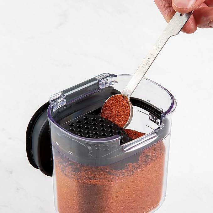 - Accessory-Rich for Smart Storage – Comes with built-in magnetic tools like a leveling bar, measuring/dusting spoon, and removable terra cotta tamper to keep brown sugar soft. All accessories store neatly under each lid for space-saving efficiency.