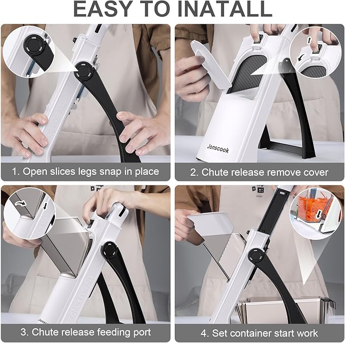 - 【12-Month Satisfaction Warranty】- Our vegetable chopper is safe, easy to assemble, and simple to use. Please read the included instructions carefully before use. If you have any questions or concerns, don’t hesitate to contact us via Amazon—we’ll respond within 24 hours. Every Jonscook mandoline food slicer comes with a 12-month warranty for your peace of mind.r vegetable cutter