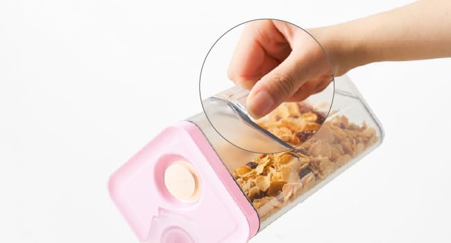 - SMART ONE-CLICK SEAL LID; No hinges. Simply press down the button to lock and lift up the button to open.