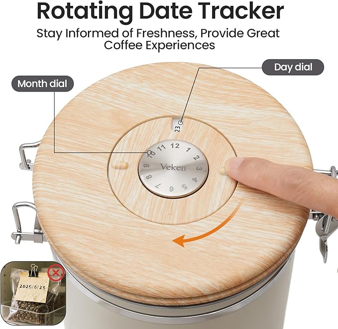 - 【Reason to Choose Veken】Crafted from durable 304 stainless steel, Veken coffee canisters put forth our strength to preserve more freshness of each coffee bean. Every detail is designed with your coffee experience in mind. Choose Veken for reliable, elegant coffee storage that enhances your daily coffee experience.