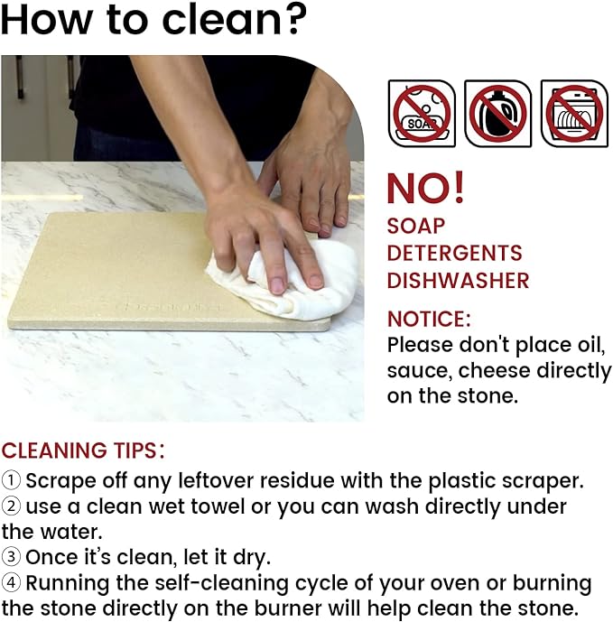 - Food Grade Stoneware: The bread baking stone is burnt in 2200β kiln, it does not encompass any harmful substance or odor.