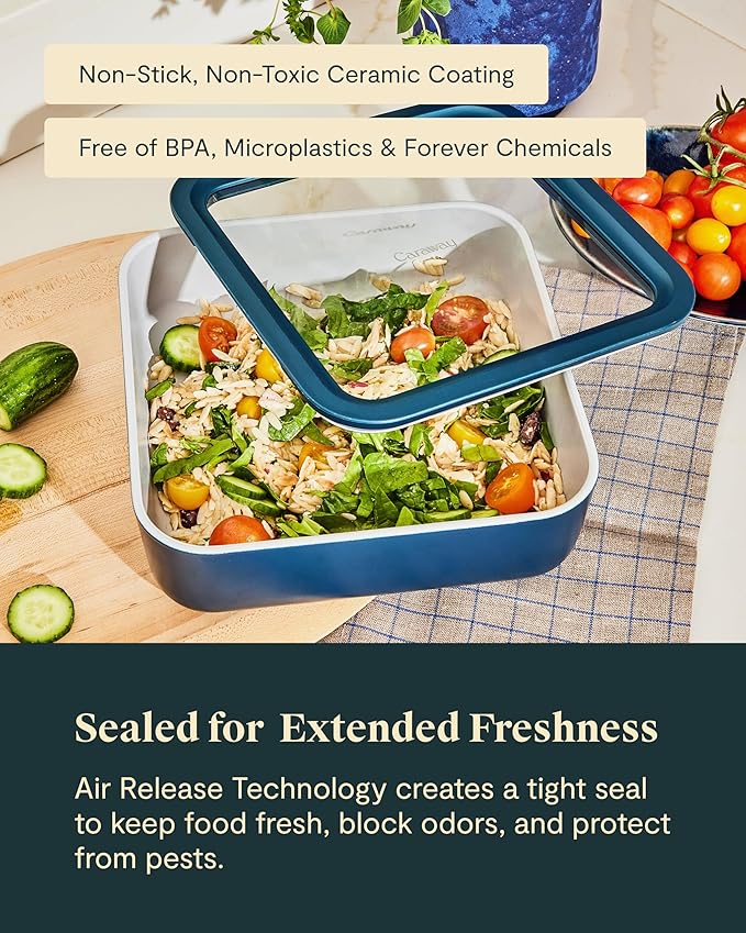 - BEAUTIFULLY DESIGNED: The cleanest, best-looking approach to storing your food. Our glass container features a clear glass lid for easy viewing Each container comes in modern colors that will match with your entire Caraway collection.