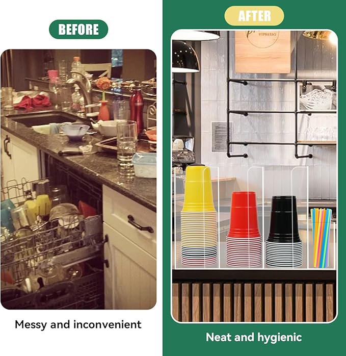 - 【Versatile Cup & Lid Storage】Perfect as a coffee cup dispenser or cup organizer, it neatly holds disposable coffee cups, lids, stirrers, and even sleeves. No more cluttered countertops
