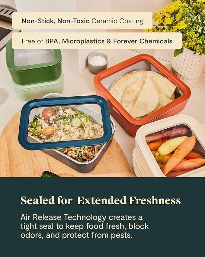 - NON-TOXIC & ECO-FRIENDLY MATERIALS: With a ceramic-coated surface, these containers are free from BPA, PFAS, and other harmful chemicals, ensuring safe and sustainable food storage.
