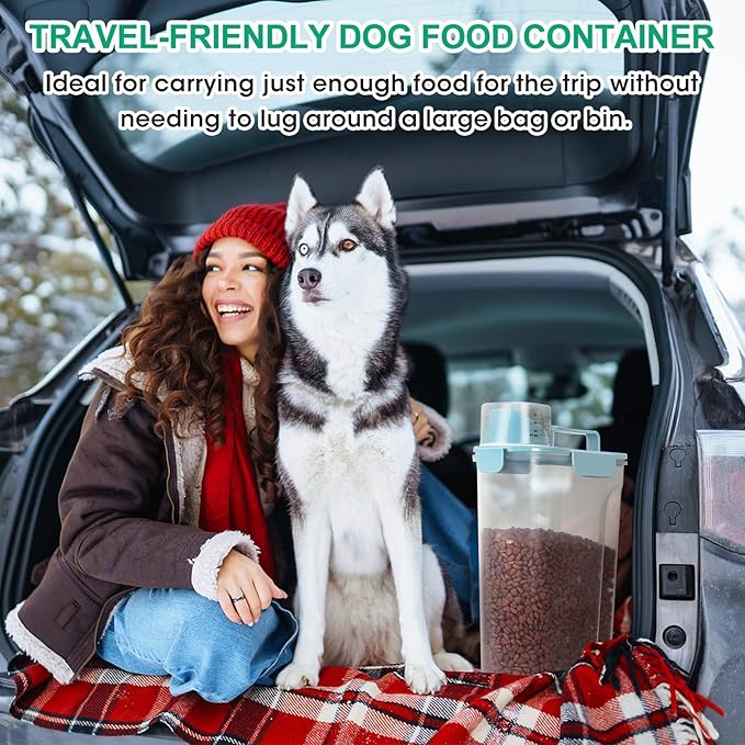 - Airtight Dog Food Container: With the snap-lock latches and silicone gaskets, the dog food dispenser can shut tightly to seal in freshness. You dog or cat won't open the container and make a mess any more