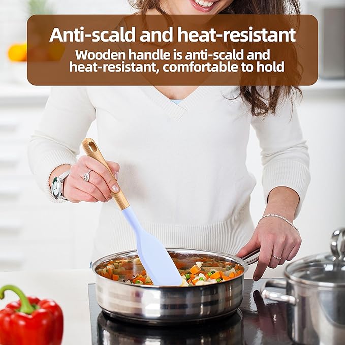 - ✅ 🍳Safety:wooden handle spatula set Easily Clean, It can be cleaned in the dishwasher, the soft cloth is clean, the surface of the wooden handle has no burrs, and it is smooth and does not hurt your hands.