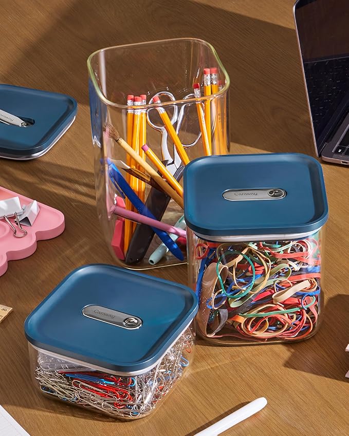 Caraway 4qt Glass Airtight Food Storage Container with Lid – Non-Toxic, BPA-Free Kitchen Storage Container – Stackable, Space-Saving Airtight Container for Dry Goods and More - Navy