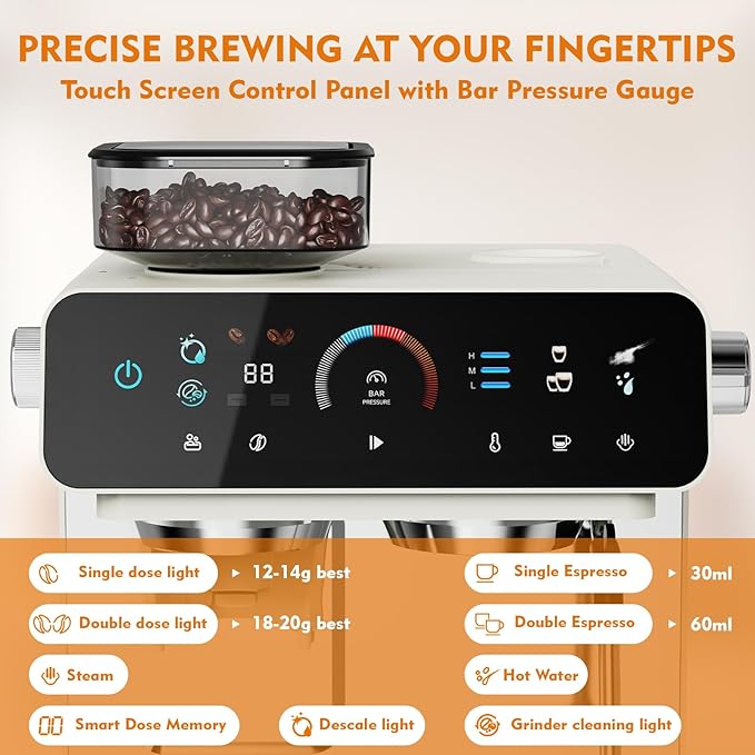 - Easy-to-use Touchscreen: Real-time monitoring of extraction pressure, temperature, and time via the built-in display, eliminating guesswork and ensuring consistent café-quality espresso—perfect for beginners and Home Barista