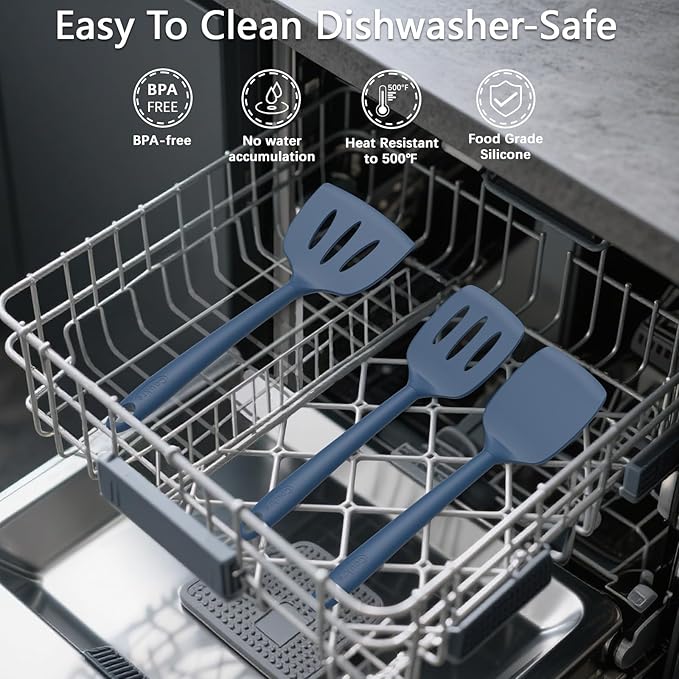 - [Easy to Clean & Dishwasher Safe]: The non-stick silicone surface makes cleanup a breeze, and all utensils are dishwasher-safe for added convenience. With top hanging holes and the included storage holder, organizing and storing your utensils is easier than ever