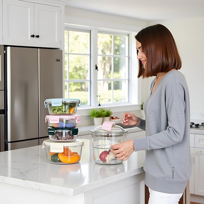 - 【Stackable Storage to Save Space】The durable 12oz glass food storage containers stack into each other for easier storing when you don’t use them, which fit neatly in kitchen cabinets