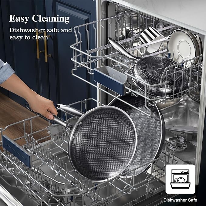 - PREMIUM CONSTRUCTION: Stainless steel frying pan with innovative honeycomb-textured cooking surface and durable nonstick coating for superior food release
