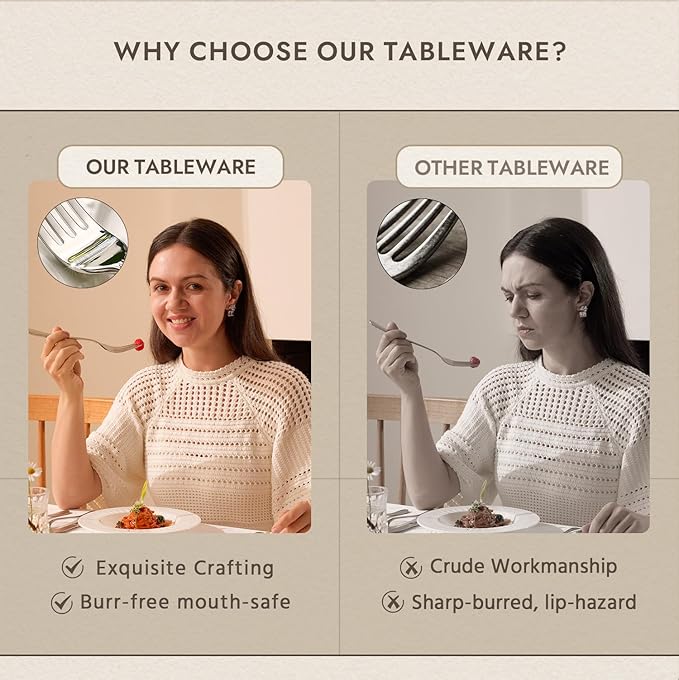 - FABRICATION: Crafted of high-performance 18/0 stainless steel with advanced hot forged process to strengthen durability and corrosion resistance. Crafted forged process,strong and durable. Dishwasher safe for convenient cleaning.