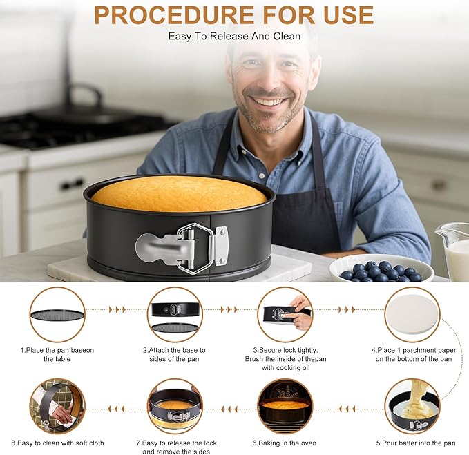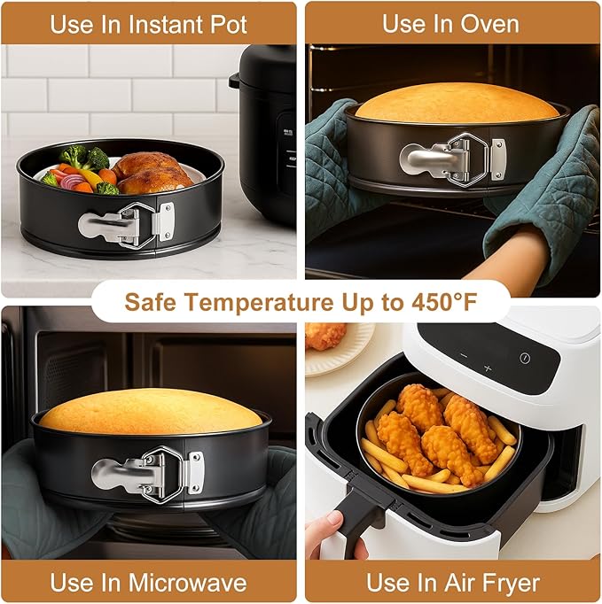 - š Leak-Proof & Non-Stick Springform Pans for Stress-Free Baking: Our premium springform pans feature secure locks and a non-stick coating that prevents leaking and stickingāwhether youāre baking cheesecakes, quiches, lasagna, or ice cream cakes. Perfect for both beginners and experienced bakers
