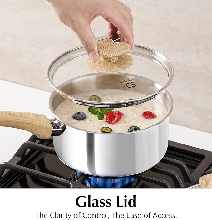 - Complete 6 Piece Stainless Steel Saucepan Set for Everyday Meals: Includes three saucepans in 1QT, 2QT, and 3QT sizes with matching lids. Perfect for simmering sauces, boiling pasta, or preparing soups.