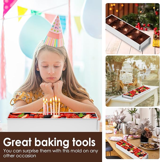 - [Multi-Purpose Baking Tool] Perfect for mousse, cheesecakes, brownies, jello shots, chocolate bars, and frozen desserts for the rectangle cake pan. You can use the cake baking pans for various occasions, such as birthdays, weddings and parties.