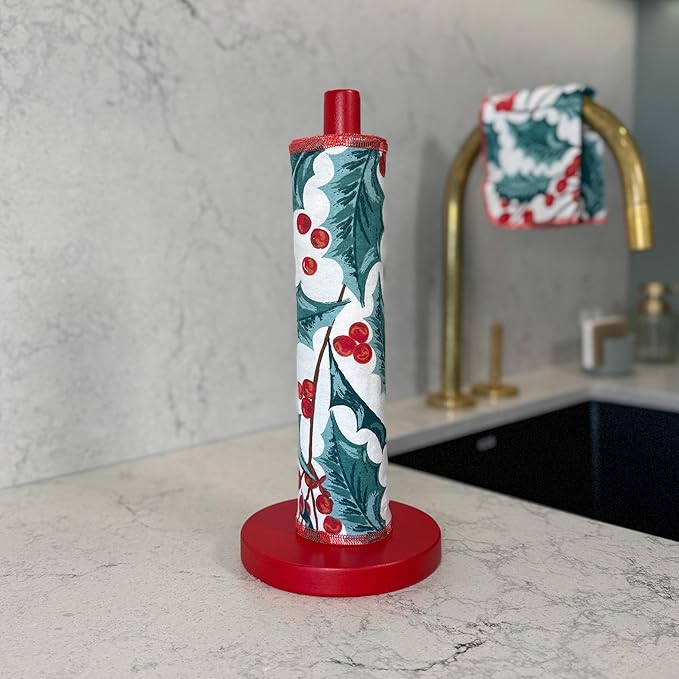Reusable Paper Towels - 10 Pack - Roll of Washable Cotton Cloth Paper Towels - Paperless Reusable Napkins Cloth Washable - Absorbent + Long Lasting - Zero Waste Products - (Holly Jolly)