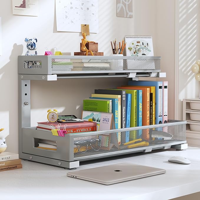- 【Larger Size, Greater Practicality】Our organizer features a bottom basket size of 19" x10" and a top basket size of 19" x 6.5", offering approximately 30% more storage space compared to standard products, which have bottom baskets of 13.7" x 8.9" and top baskets of 12.5" x 5.4". This enhanced capacity provides more room to keep your items neatly organized and accessible.