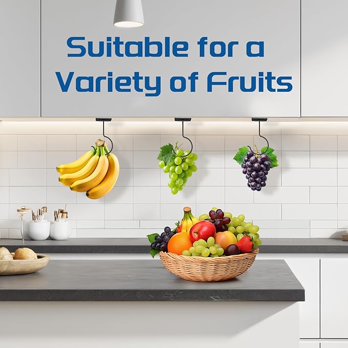 - LONGER FRESHNESS WITH LESS WASTE: Prevent premature ripening and bruising by using this effective banana holder under cabinet. Hanging your bananas allows for 360-degree air circulation, which helps reduce pressure spots and keeps your fruit fresh, making it easy to enjoy a better taste for several days longer than leaving them on the counter.