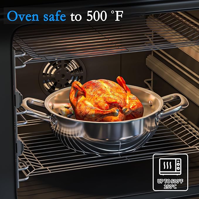 - [Universal Compatibility: All Stovetops, Oven & Dishwasher Safe]: This kitchen cookware set is designed for ultimate versatility. It is fully compatible with all stovetops, including Induction, Gas, Electric, Ceramic, and Halogen. Seamlessly transition from stovetop to oven, as the set is Oven Safe up to 500°F. For effortless cleanup, the entire cookware set is 100% Dishwasher Safe.