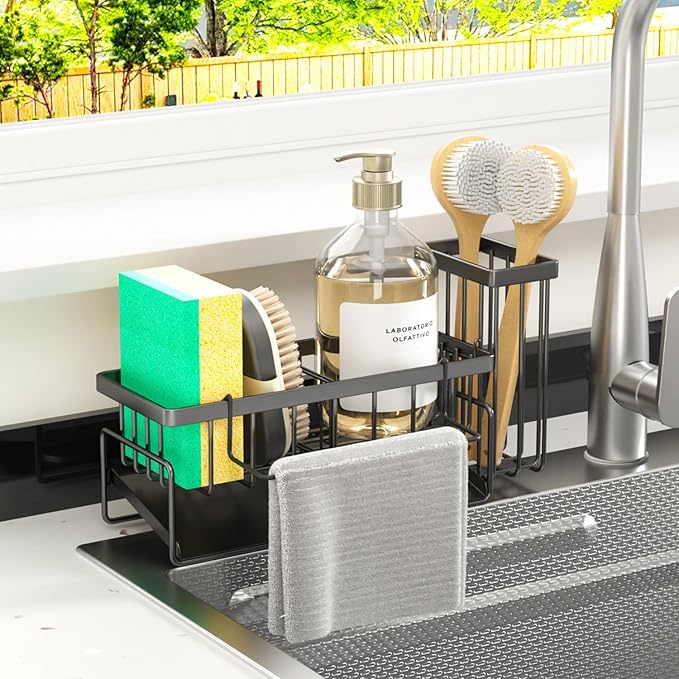 - 【Non-Slip Heavy Duty Sponge Caddy – Won’t Scratch or Move During Use!】Reinforced SUS304 steel frame ensure stability even when scrubbing pots vigorously. Rounded edges protect delicate marble/quartz countertopsfrom scratches, while the rustproof construction survives daily water exposure
