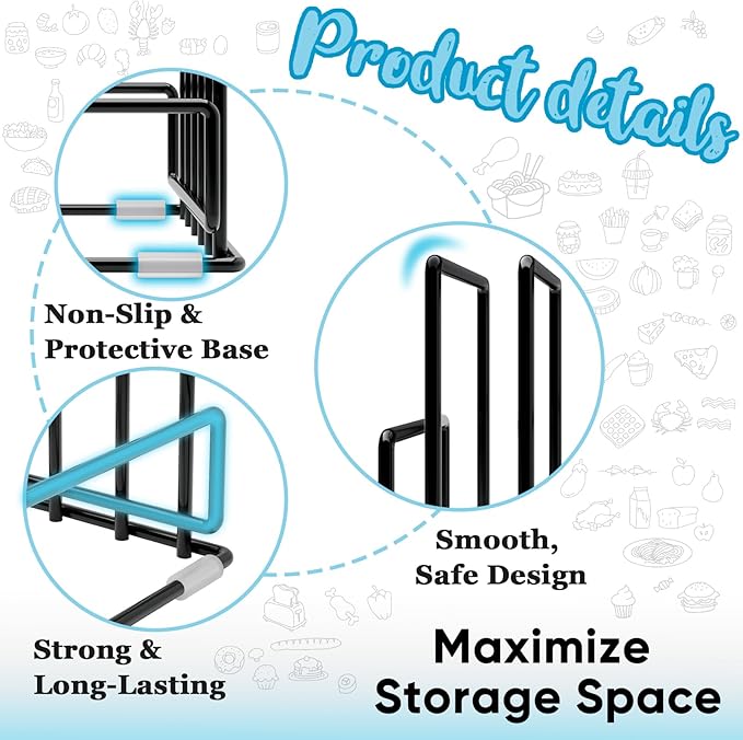 - ใ๐๐จ๐ง-๐๐ฅ๐ข๐ฉ & ๐๐จ๐ฎ๐ง๐ญ๐๐ซ๐ญ๐จ๐ฉ ๐๐๐๐ใEquipped with silicone covers on the base, this baking sheet organizer stays firmly in place without sliding or scratching your kitchen surface. It protects your countertops while keeping boards and pans securely upright.