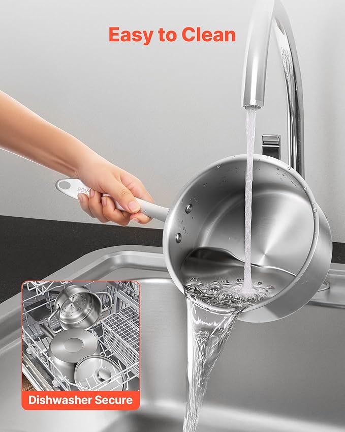 - Reinforced Handle: Designed with an integrated metal handle that’s securely bonded to the sauce pot body. It stays firm and won’t loosen or break over time. The ergonomic grip is comfortable and slip-resistant — even with wet hands