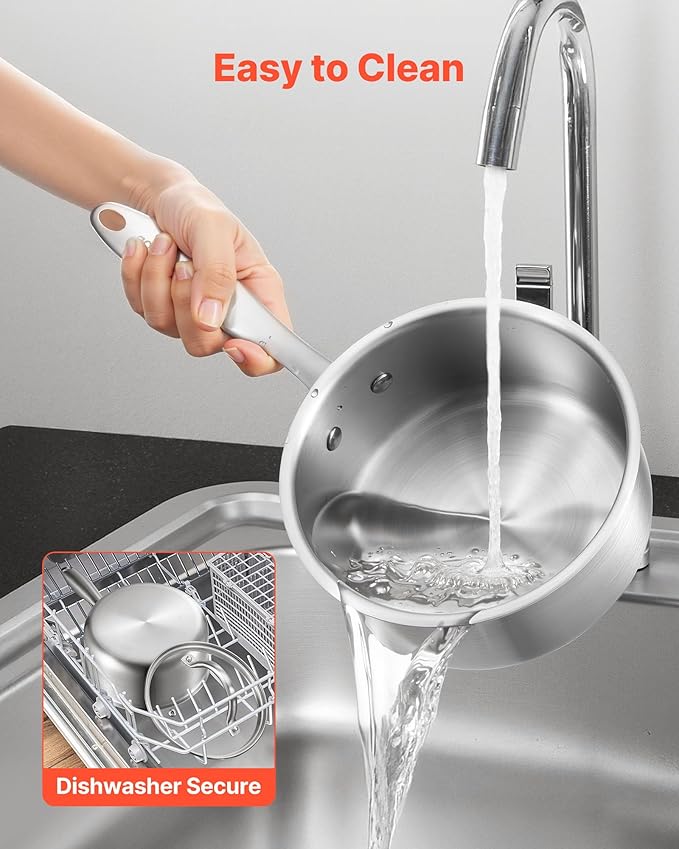 - Reinforced Handle: Designed with an integrated metal handle that’s securely bonded to the sauce pot body. It stays firm and won’t loosen or break over time. The ergonomic grip is comfortable and slip-resistant — even with wet hands