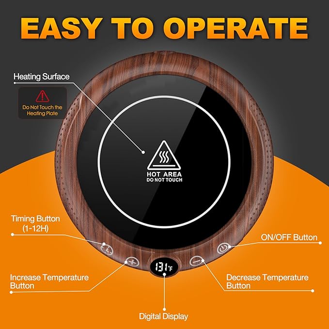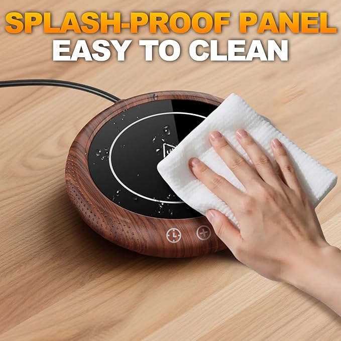 - 【Ergonomic & Smart Cup Warmer】The coffee warmer for desk features a tilted display design for easy viewing and ergonomic comfort during use. Its smooth, non-stick surface resists staining—whether from daily water marks or coffee stains—and can be effortlessly cleaned with a damp cloth to quickly remove residue.