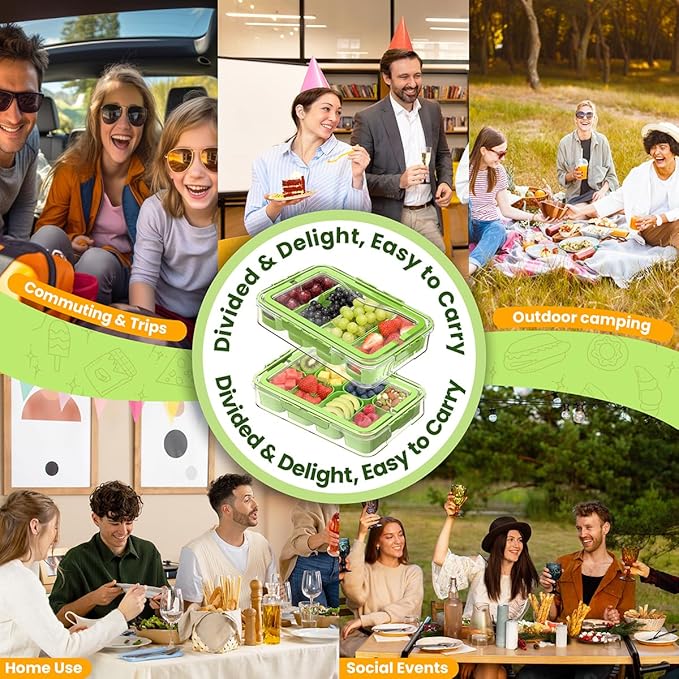 - SNACK SMART TIDY - You can easily see and access the snacks in the snackle box. The charcuterie container set has 8+4 removable compartments that can neatly and orderly place fruits, vegetables, snacks, candies, salads or cooked foods for kids or adults.
