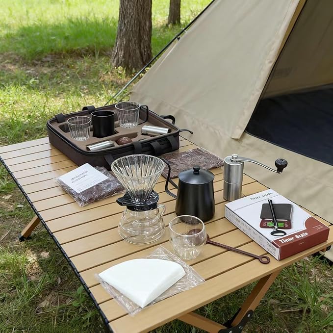 - Bullet Point 2: 【Ultimate Portability & Organization】 Travel-Ready with a Durable Hard Carry Case - Take your coffee bar anywhere. The custom-foam interior and sturdy brown portable case securely cradle each component, preventing damage during transit. The organized layout and mesh pocket make setup and cleanup a breeze, ideal for camping trips, hotel stays, office use, or gifting.