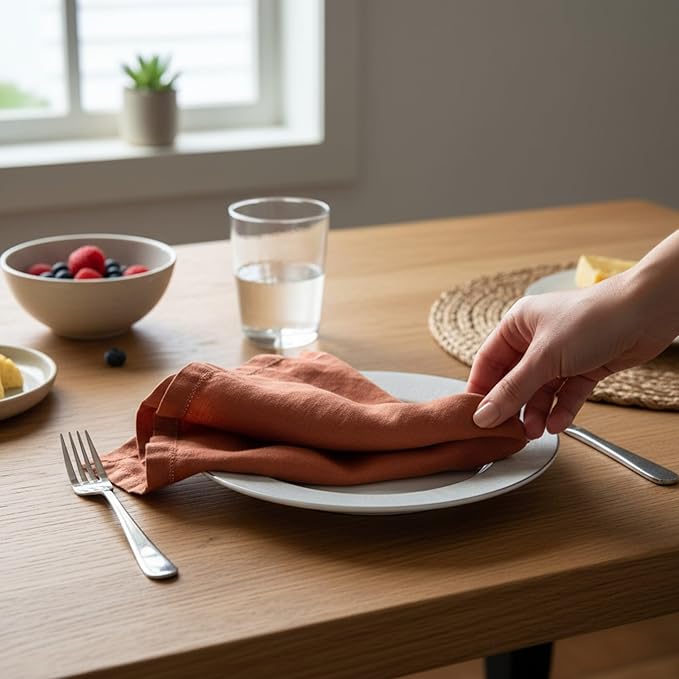 Hemstitched Linen Napkins – 20 Inch x 20 Inch – Stonewashed Pure Linen Cloth Dinner Napkins with Mitered Corners - 100% French Flax – Machine Washable - Set of 4 (Rustic Orange)