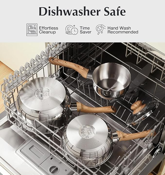 - Premium Stainless Steel Construction: The stainless steel saucepan set is expertly crafted from 18/10 stainless steel for rapid heating. Its non-reactive cooking surface preserves natural flavors, guaranteeing consistently delicious culinary outcomes.