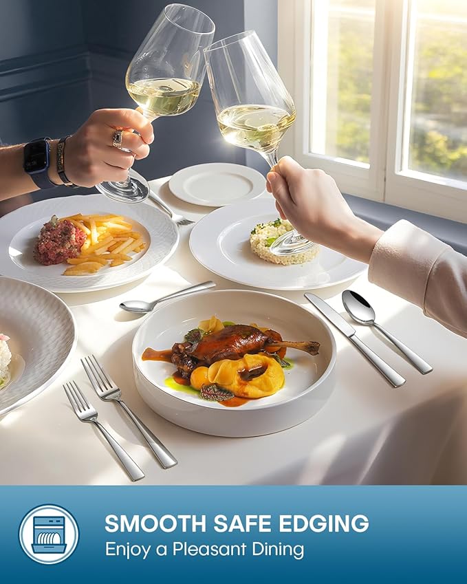 - FOOD-GRADE STAINLESS STEEL: Crafted from premium durable stainless steel with a glossy mirror finish. Our flatware set is a perfect blend of practicality and health, allowing you to enjoy your food comfortably and easily. Meanwhile, its sturdiness ensures that it will not bend in daily use, providing for long-term use